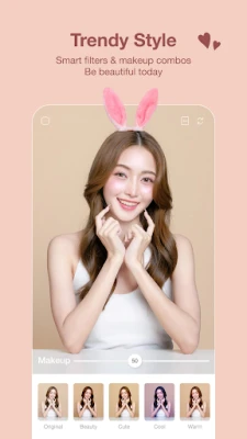 Beauty Cam, Selfie Editor ni programu bunifu ya kamera na kihariri selfie. Piga picha na video maridadi ukitumia zana za kitaalamu za kurekebisha, athari za make-up na vichujio vya kuvutia. Unda matokeo kamilifu kirahisi.