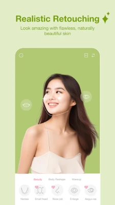 Beauty Cam, Selfie Editor inakuja na kamera mahiri ya urembo pamoja na zana za kipekee za kurekebisha picha zinazotumia AI. Inua kiwango cha selfie zako kwa marekebisho kama vile kulainisha ngozi, kuangaza macho, kuficha dosari ndogo na kuongeza mng'ao wa asili. Tumia zana maalum za kurekebisha umbo la uso kama vile macho, pua, midomo, na taya ili kupata uwiano unaoupenda. Aidha, jichague mitindo mbalimbali ya make-up – kuanzia mwonekano rahisi wa kila siku hadi ule wa kisasa wa jioni, ukijumuisha rangi za midomo, vivuli vya macho, na hata lenzi za rangi. Kwa bonyezo moja tu, picha yako itaboreshwa mara moja, huku ikiondoa chunusi, kuficha weusi chini ya macho, na kuweka meno meupe.
