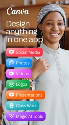 Anza safari yako ya ubunifu na Canva, jukwaa la kipekee linalounganisha mhariri wa picha, video, na zana za kubuni zote ndani ya programu moja inayotumia akili bandia (AI). Iwe unahitaji kuunda bango la kuvutia, kuhariri nyaraka za kitaalamu, au kutengeneza video zenye ubora wa hali ya juu, Canva huwezesha waumbaji wa Kiafrika kuleta mawazo yao uhai bila shida. Tangu kuanzishwa kwake, programu hii imekuwa mahali pa msingi kwa kila mtu anayetaka kubuni maudhui yanayong'aa, kuanzia kwa wanafunzi hadi wataalamu na wafanyabiashara wadogo.