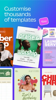 Canva AI Design & Video Editor ni programu mahiri ya AI kwa ubunifu wa picha na video. Unda mabango, hati, nembo na video kwa urahisi ukitumia zana za akili bandia. Hariri picha, tengeneza wasilisho na ripoti, ukileta mawazo yako kwenye uhalisia kitaalamu.