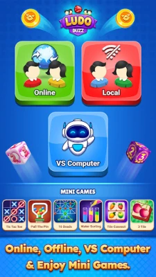 Furahia vipengele vya kipekee vinavyoinua uzoefu wako wa Ludo. Pima ujuzi wako dhidi ya wachezaji hodari kutoka kote ulimwenguni katika hali ya wachezaji wengi mtandaoni, au shiriki kicheko na ushindani na marafiki na familia kupitia hali ya wachezaji wa karibu kwenye kifaa kimoja. Ludo Buzz inatoa fursa ya kubinafsisha mchezo wako kwa kutumia aina mbalimbali za kete maridadi, vigae vya kipekee, avatari za kuvutia, na fremu za kupendeza. Jijumuishe katika ulimwengu wa Ludo wenye michoro ya kuvutia na vidhibiti rahisi vinavyohakikisha uchezaji mzuri na wa kufurahisha. Hakuna intaneti? Hakuna shida! Furahia Ludo Buzz nje ya mtandao wakati wowote. Programu hii pia inaendeshwa vizuri kwenye vifaa vya kawaida na inakuwezesha kuhifadhi na kuendeleza michezo yako. Usikose Eneo la Michezo (Game Zone) lililojaa michezo midogo kama vile Pull The Pin, Water Sort, Tile Connect, na 3 Tile Match kwa burudani zaidi!