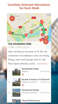 Gundua vivutio vikuu vya jiji kwa matembezi unayojiongoza mwenyewe. Programu hii inatoa ramani za kina za njia na urambazaji thabiti. Chunguza kwa kasi yako, bila kuhitaji basi la watalii, kwa gharama nafuu zaidi kuliko ziara za kawaida.