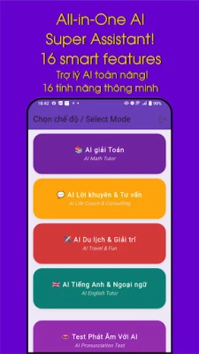 Gundua uwezo usio na kifani wa zana 16 za AI zilizoundwa kwa ajili ya matumizi halisi ya kila siku. Kuanzia kuimarisha ustadi wako wa lugha na 'Mwalimu wa AI wa Kiingereza na Lugha' anayerekebisha matamshi na sarufi kupitia mazungumzo asilia, hadi 'Mtafsiri wa Picha wa AI' anayetafsiri menyu au ishara papo hapo, Purple Lang AI inakuhudumia. Je, unajiandaa kwa mitihani kama IELTS au TOEIC? Kuna mazoezi maalum. Unahitaji msaada wa haraka? 'Msaidizi wa Dharura wa AI' hukusaidia kuwasiliana katika hali ngumu. Hata kama unataka tu kujadili mada yoyote kwa uhuru au kupokea mwongozo wa maisha kutoka kwa 'Kocha wa Maisha wa AI', zana hizi zimeundwa kukupa uwezo wa kuunda, kujifunza, na kuwasiliana kwa ujasiri usio na kifani.